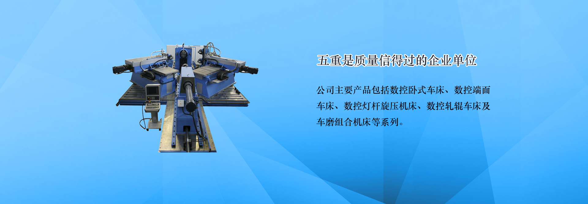 青島五重數(shù)控機床有限公司(原青島第五重型機械廠)是一家集科研,生產(chǎn),銷售為一體的數(shù)控機床生產(chǎn)企業(yè),主要產(chǎn)品:端面車床,數(shù)控端面車床,車銑復(fù)合機床,車磨組合機床,膠輥磨床,地磅遙控器,數(shù)控旋壓機。連續(xù)多年被評為青島市信用企業(yè)、質(zhì)量信得過單位。公司位于青島國際中小企業(yè)工業(yè)園,地理位置優(yōu)越,距流亭飛機場僅10公里,濟(jì)青、榮烏、青威等多條高速公路經(jīng)過,交通十分便利。... [MORE + ]